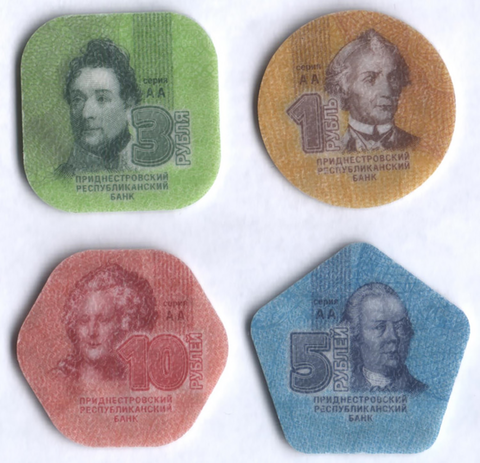 Официальные монеты Приднестровья из композитных материалов.