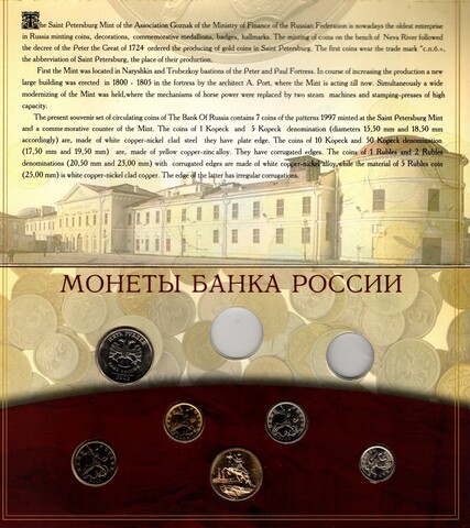 На буклете изображено главное здание Банка России (находится в Москве). На развороте здание Санкт - Петербургского монетного двора.
