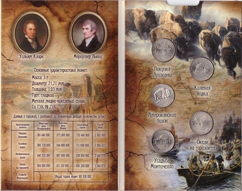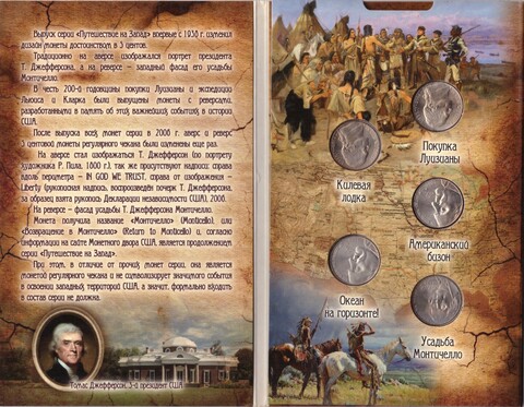 Набор монет США 5 центов Путешествие на Запад в альбоме