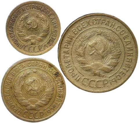 Набор монет СССР 1935 года (3 монеты) 1, 2, 3 копейки старый тип (VF)