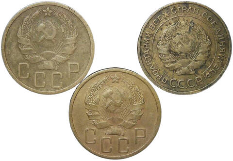 Набор монет СССР 5 копеек 1935-1936 (3 монеты) старый и новый тип герба (F-VF)