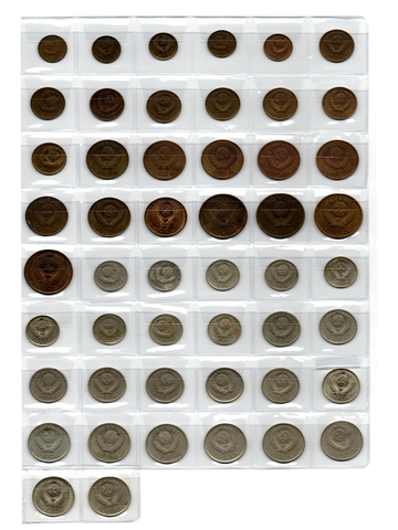 Набор монет СССР 50 шт. От 1 до 20 копеек. 1961-91 гг. Без повторов VF