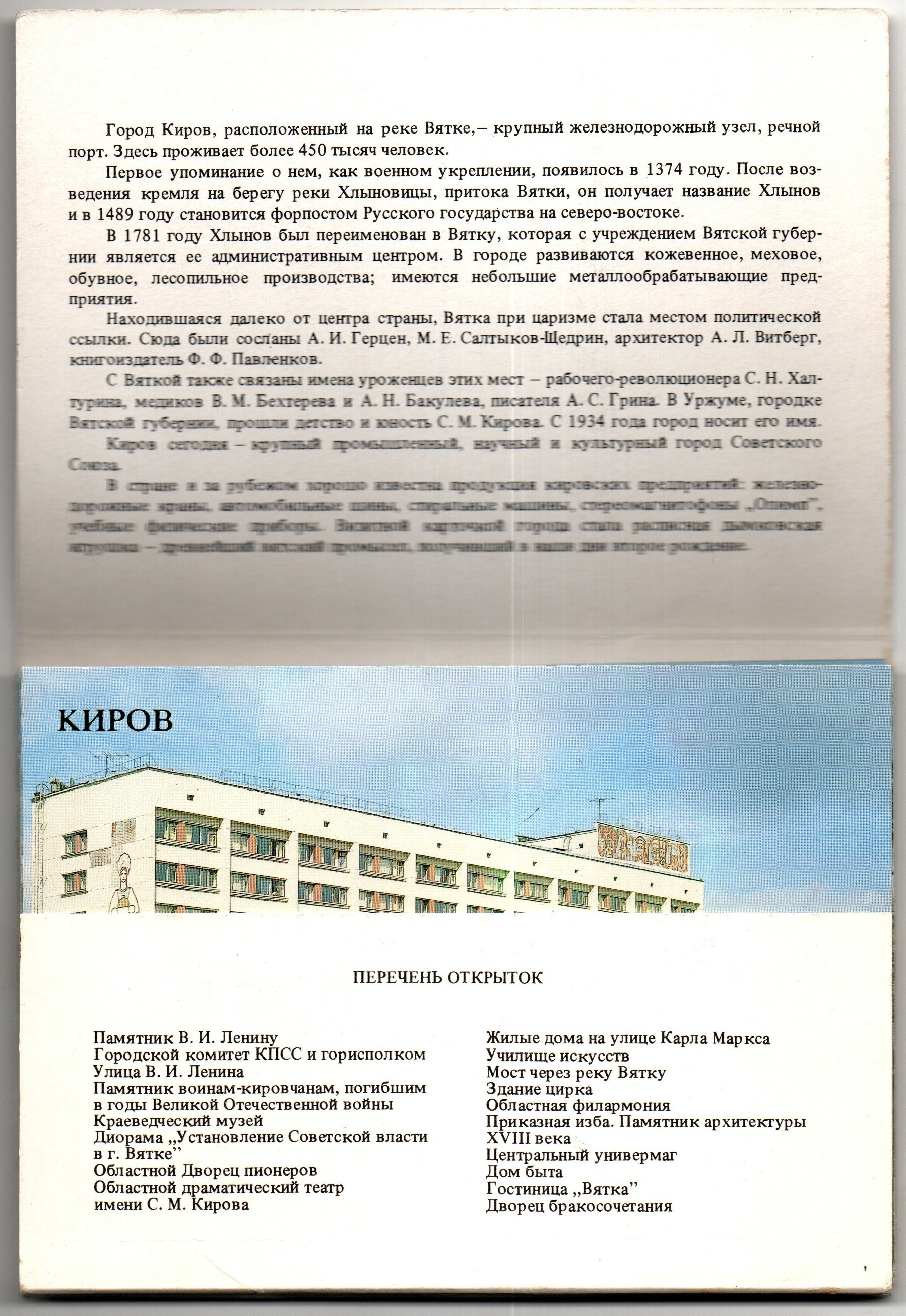 Набор открыток 18 шт. Киров 1988 г. Новые XF