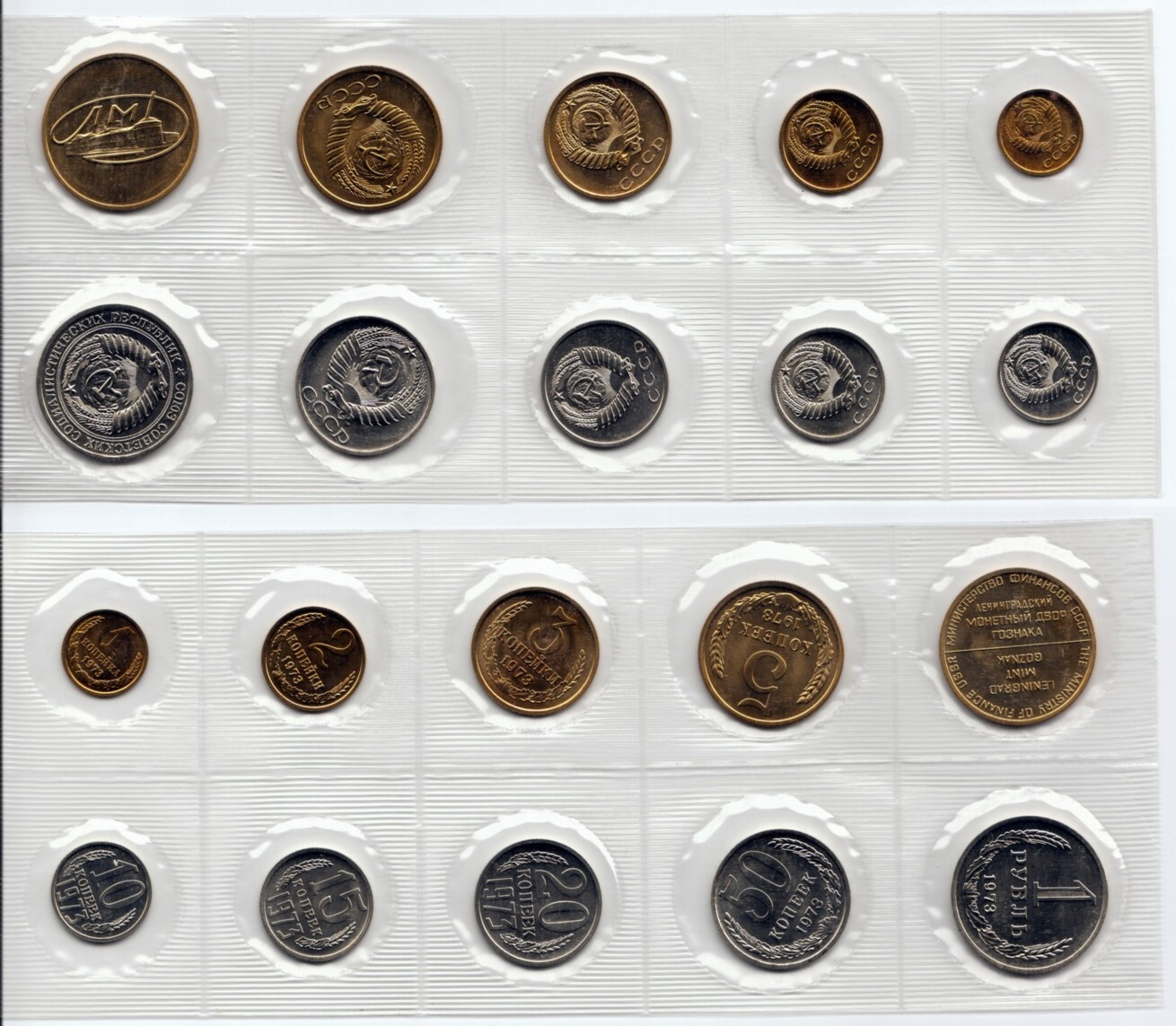 Набор регулярных монет СССР 1973 года ЛМД с жетоном (Мягкий).