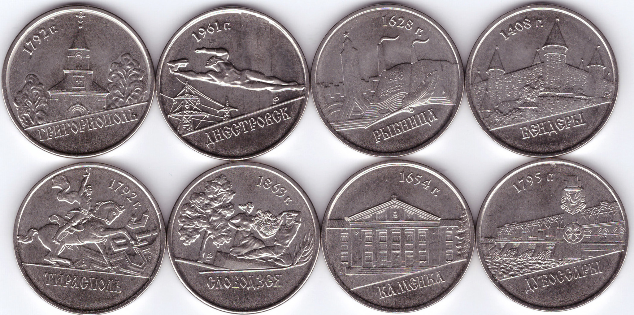 Комплект из 8 монет 2014 г. Приднестровье. 1 рубль. Серия «Города Приднестровья».