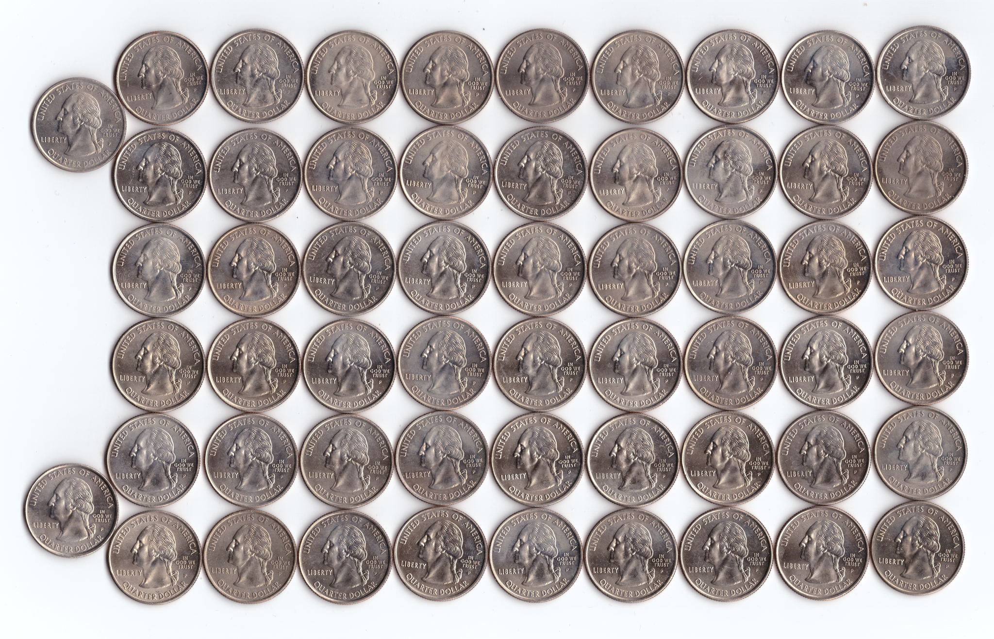 Набор Штаты и Территории квотеры 25 центов 56 штук 1999-2009 гг. Двор P цветная эмаль