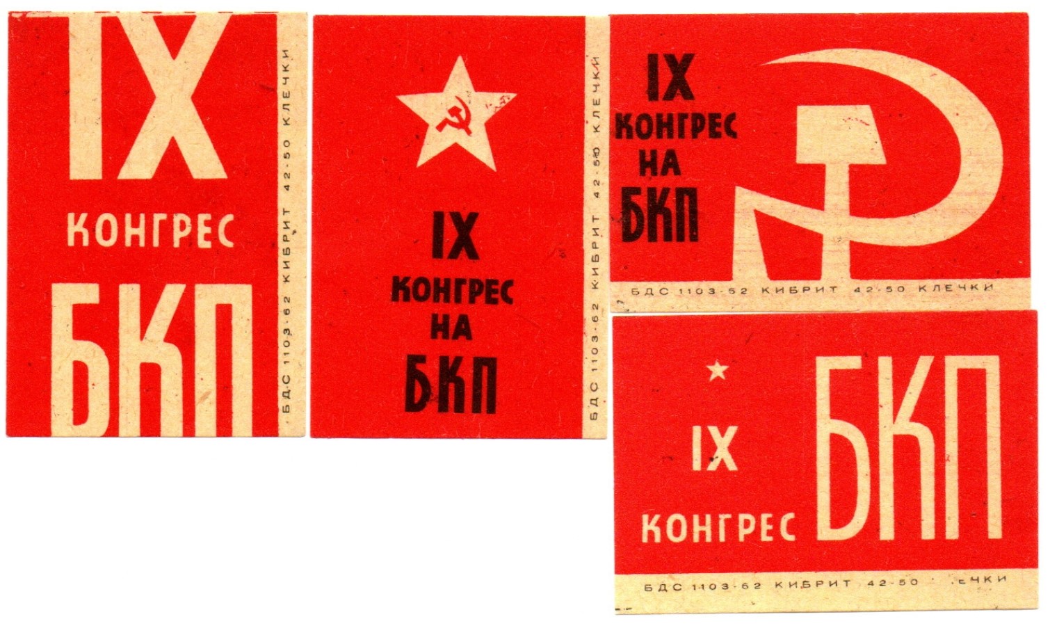 Набор спичечных этикеток - IX конгресс БКП - 1966 год - Болгария - 4 штуки