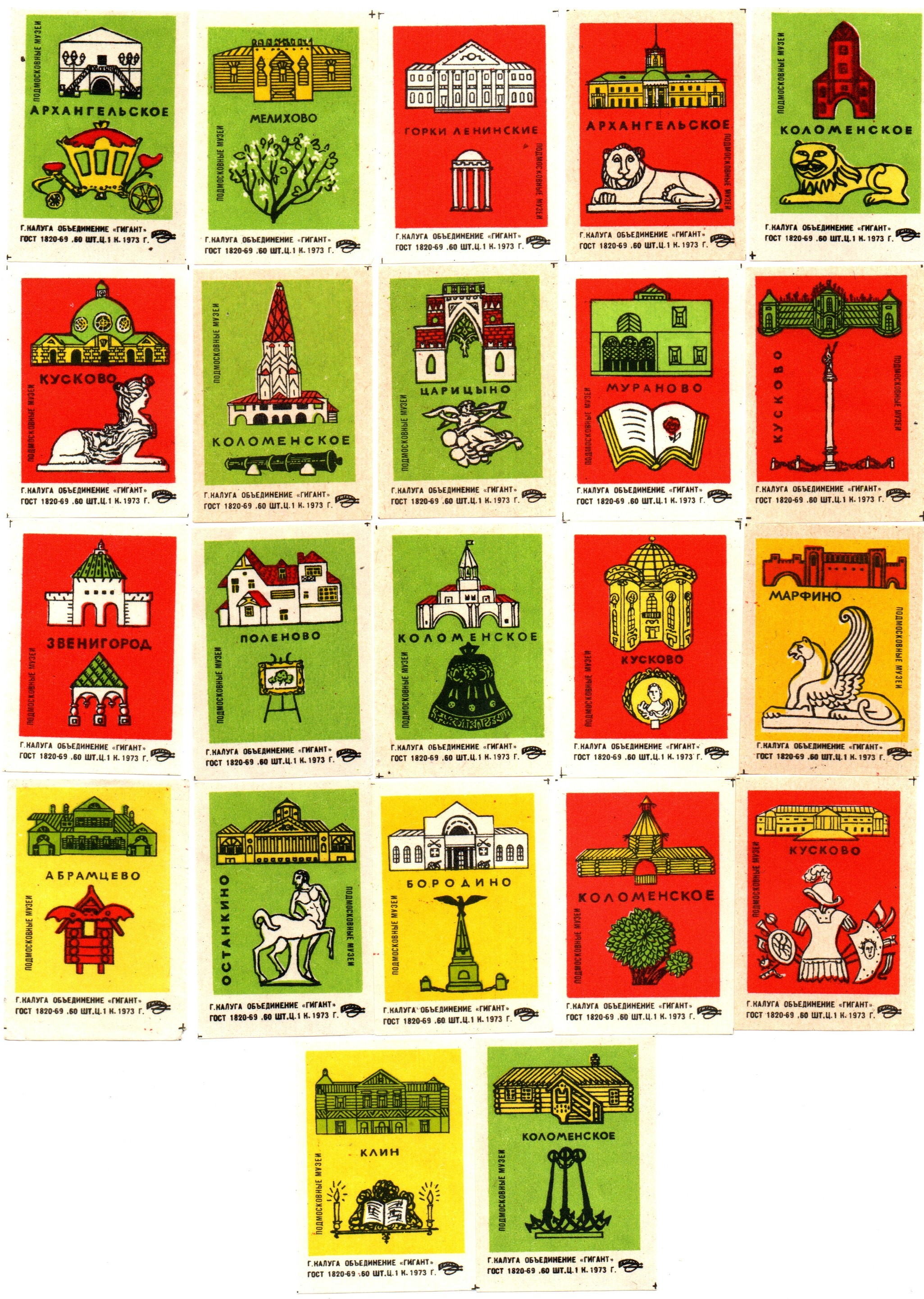Набор спичечных этикеток - Подмосковные музеи - Калуга Гигант - 1973 год - 22 штуки