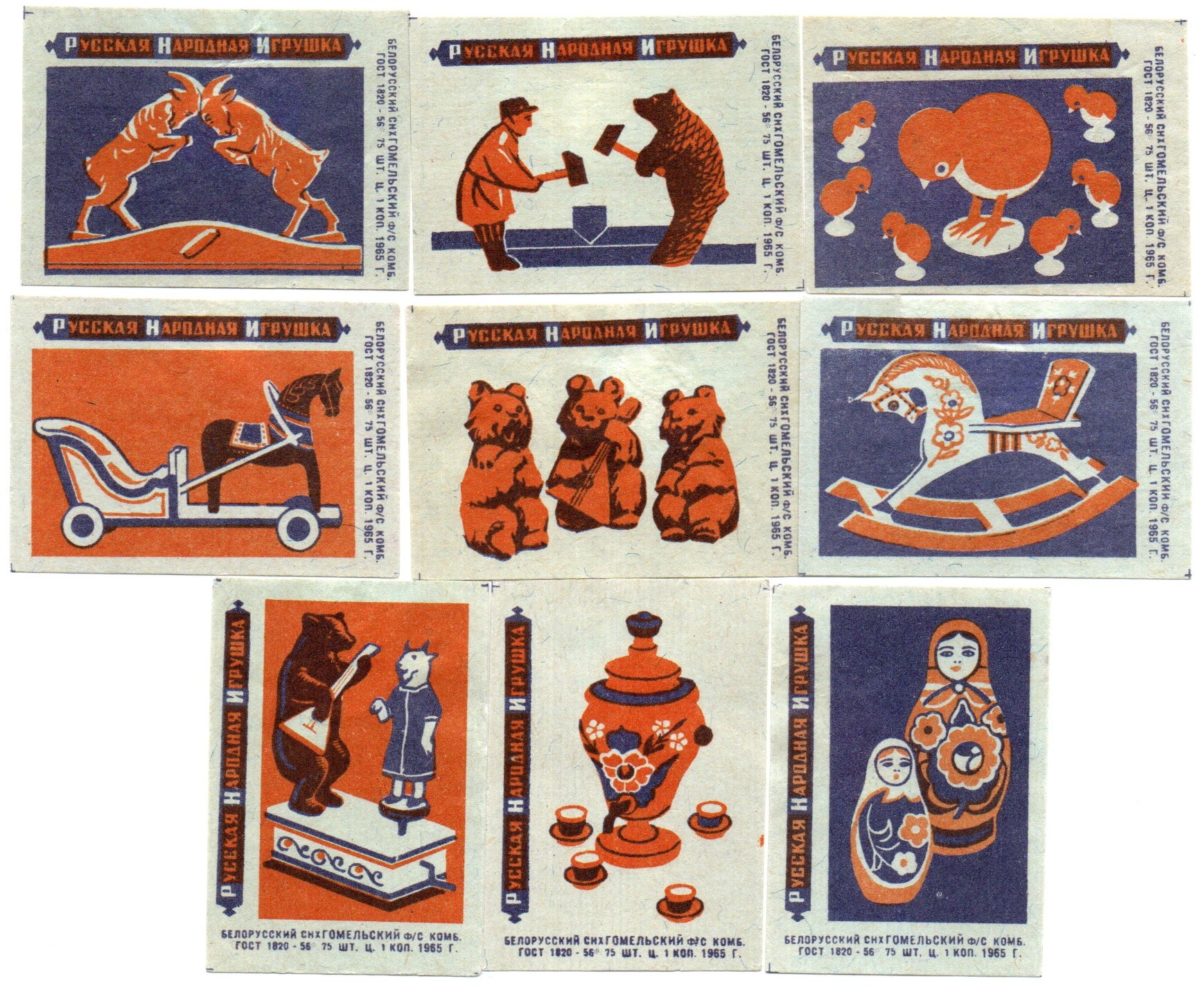 Набор спичечных этикеток - Русская народная игрушка - БССР Гомель - 9 штук