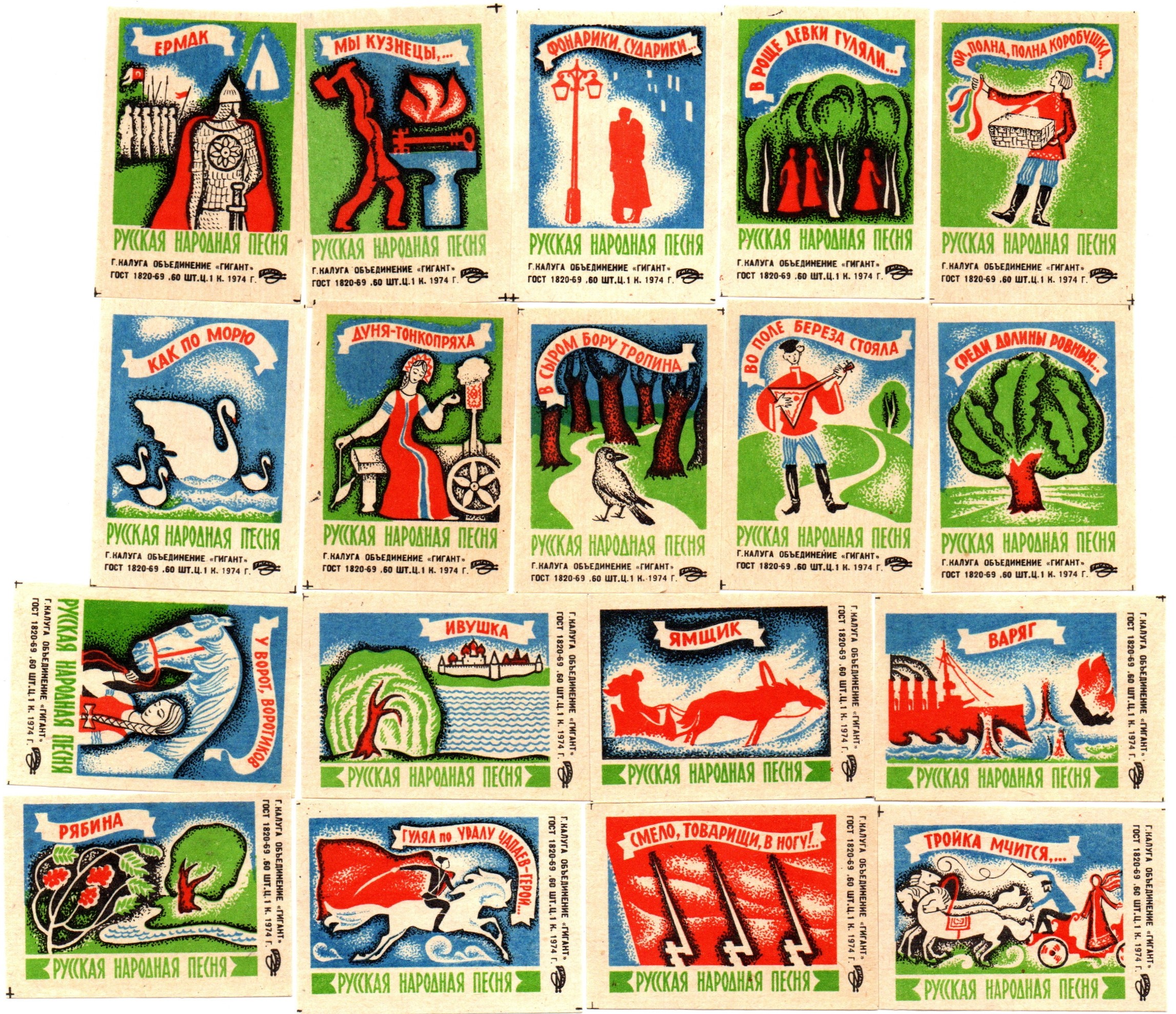 Набор спичечных этикеток - Русская народная песня - Калуга Гигант - 1974 год - 18 штуки