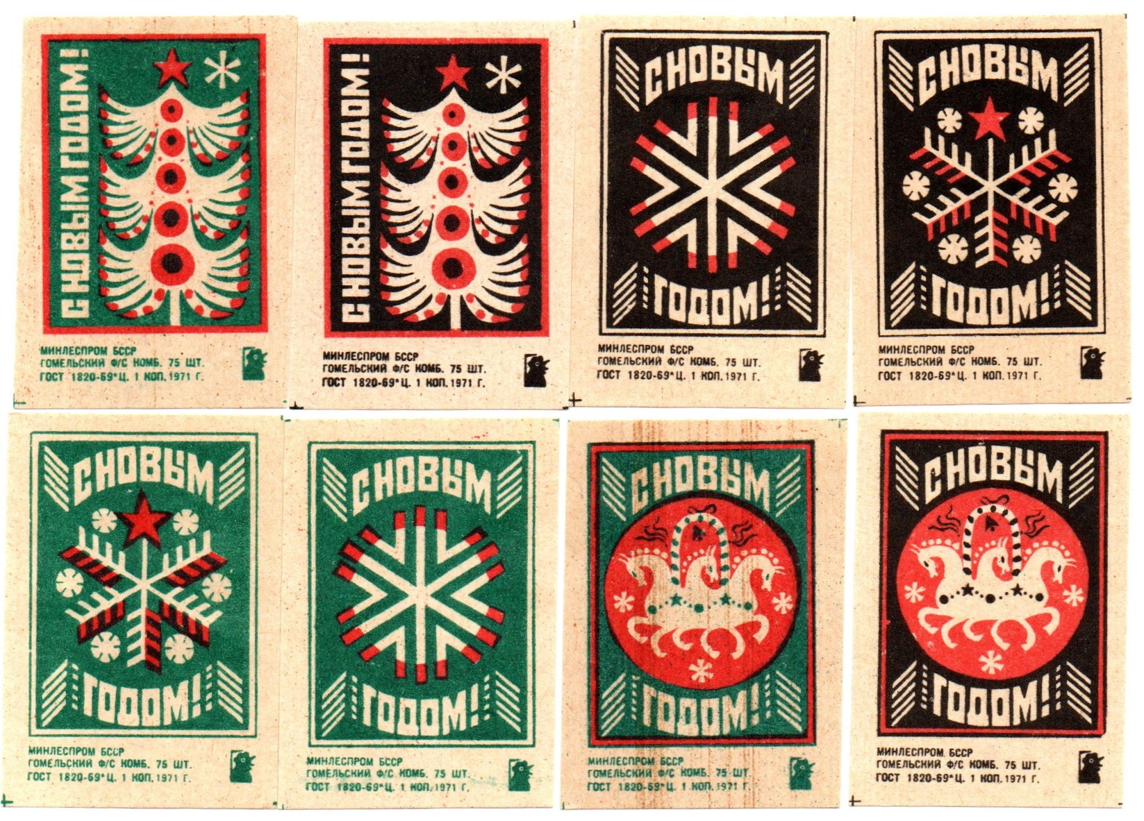 Набор спичечных этикеток - С новым годом! - 2 цвета - БССР Гомель - 8 штук