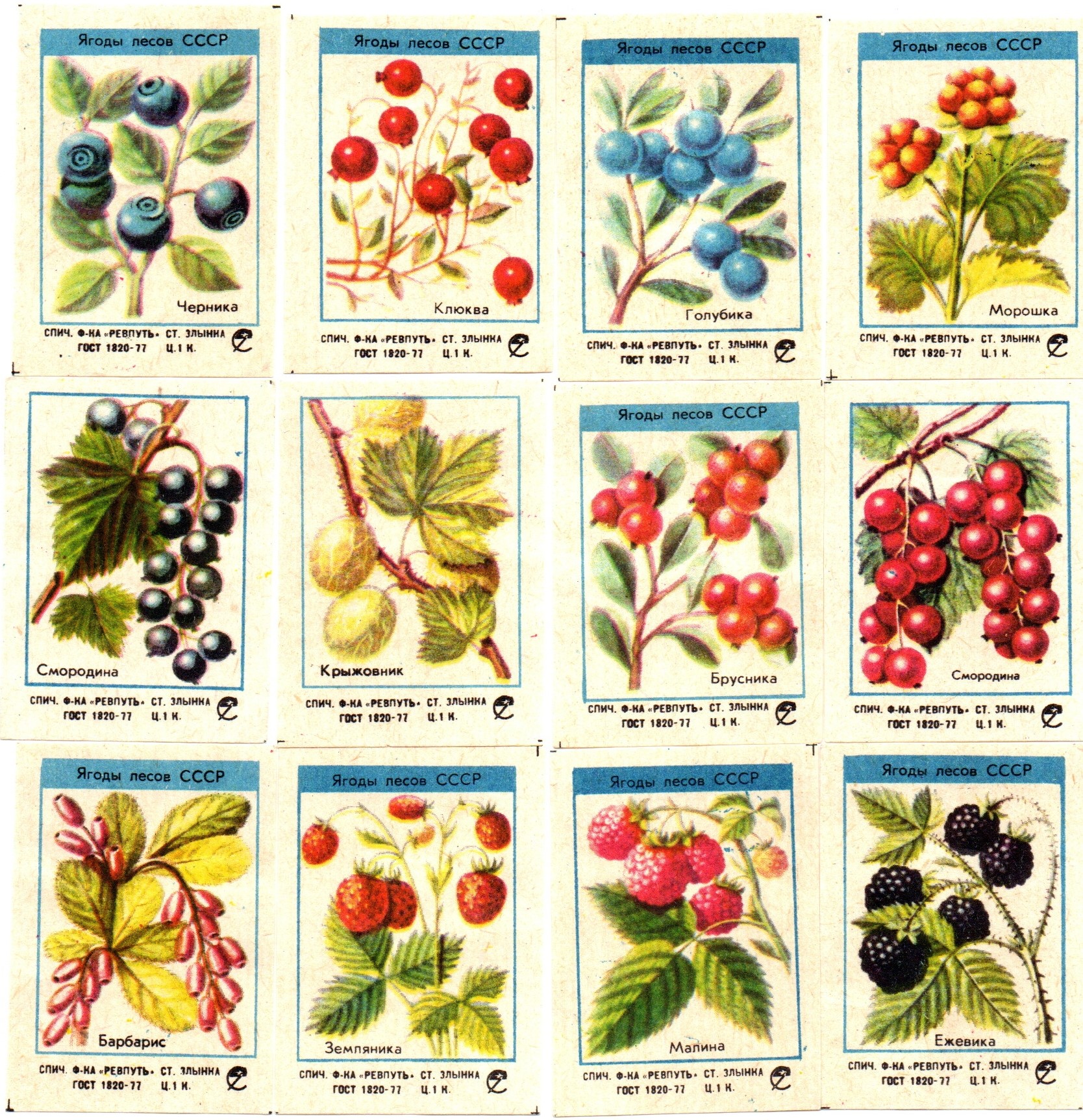 Набор спичечных этикеток - Ягоды лесов СССР - 12 штук - Ревпуть Злынка