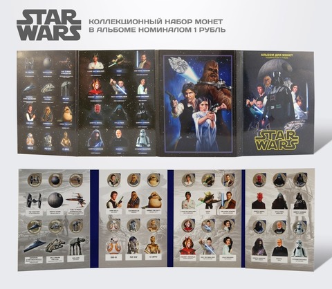 Набор "Star Wars". 24 Цветные монеты 1 рубль в альбоме