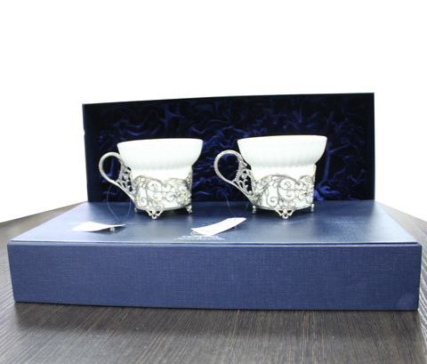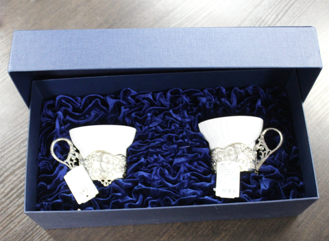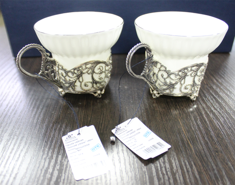 В комплекте в чашки и 2 серебряных подстаканника. Без использования.
