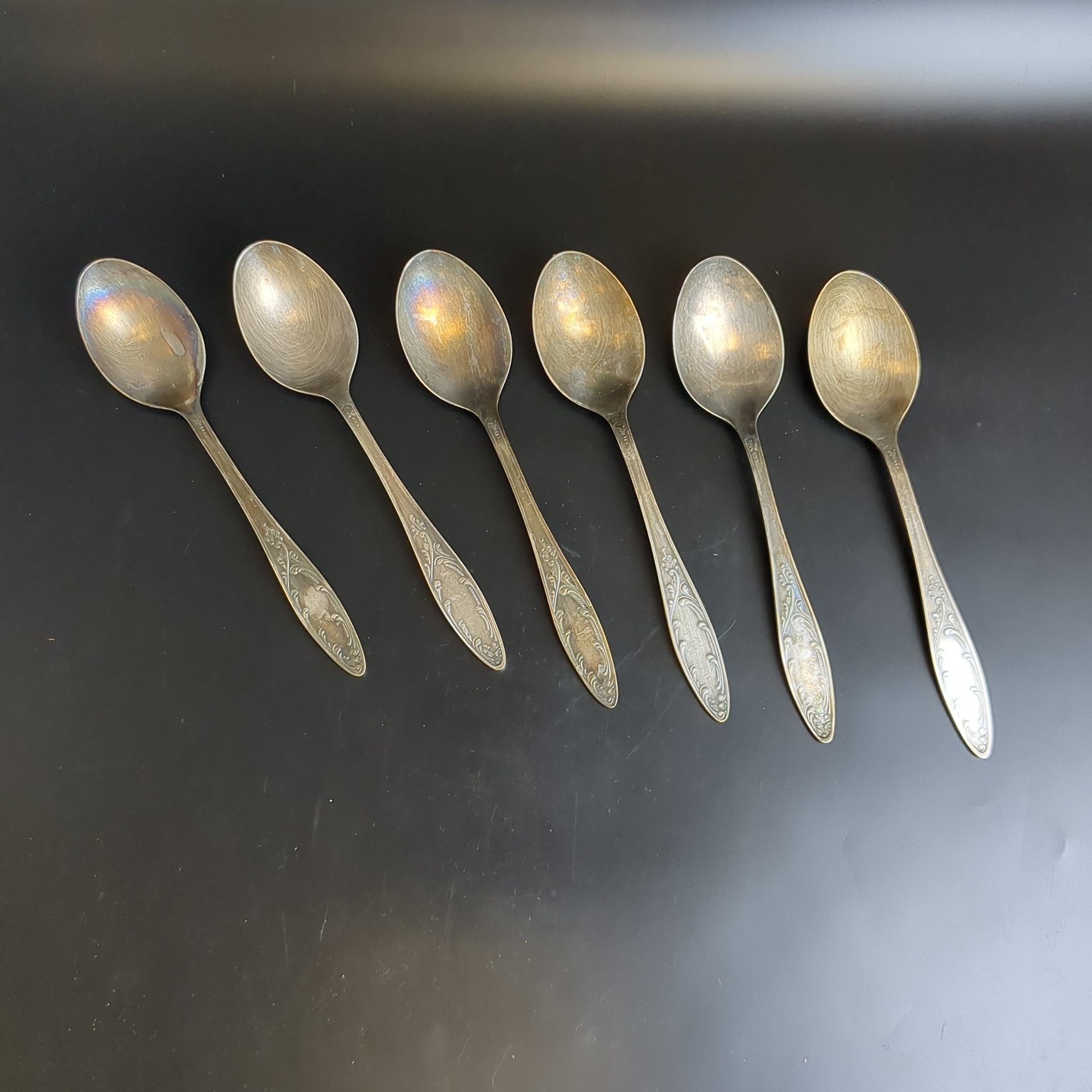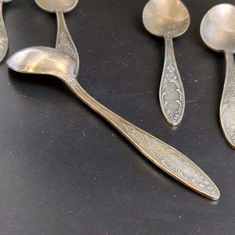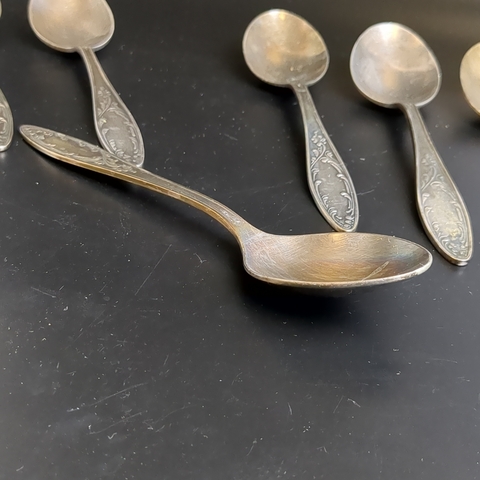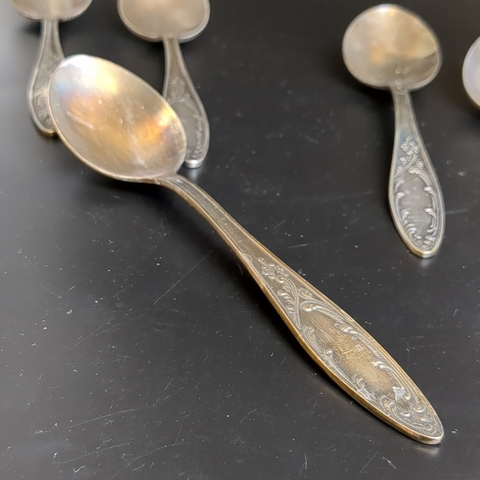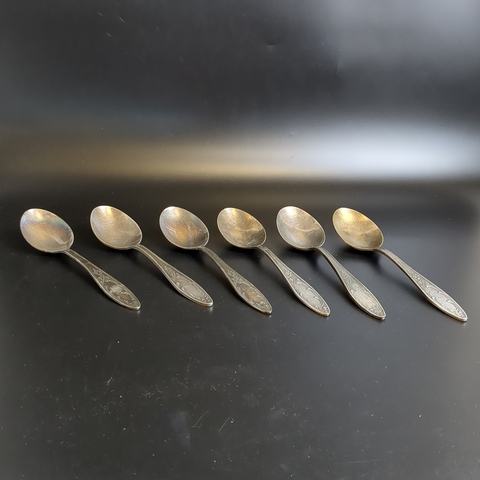Набор столовых ложек Пламя на 6 персон, МНЦ (медь-никель-цинк), Оленегорский механический завод, СССР, 1970-1980 гг.