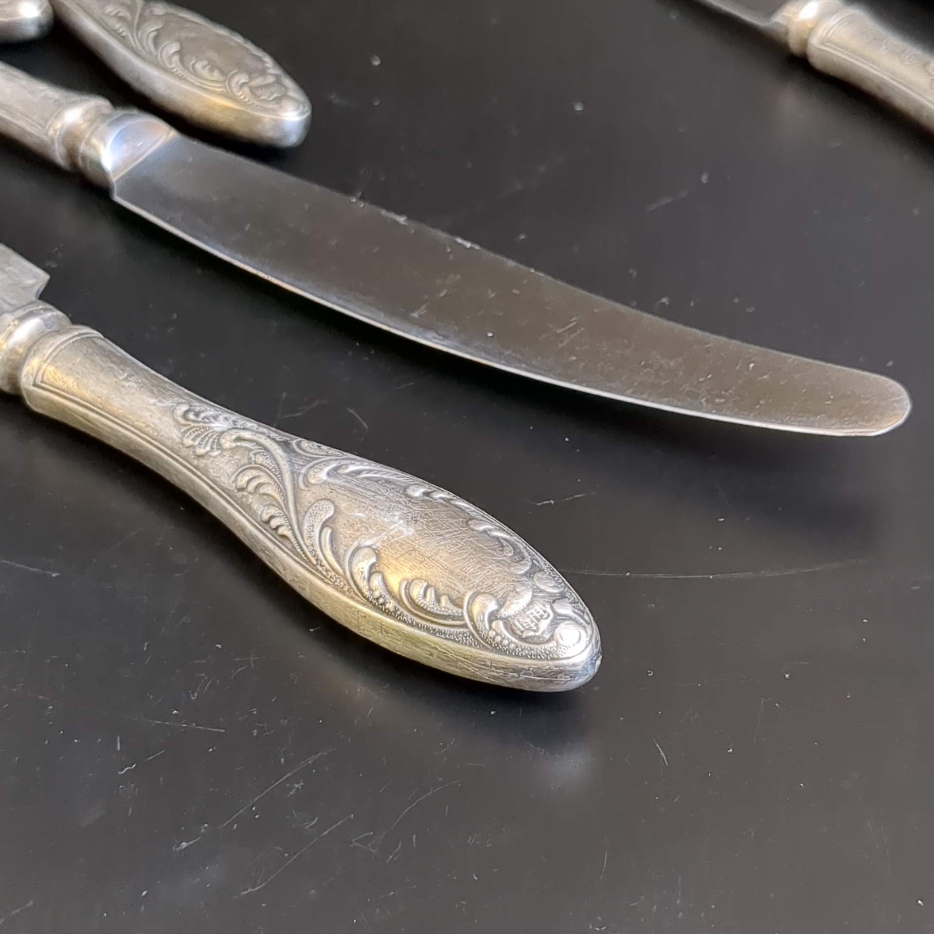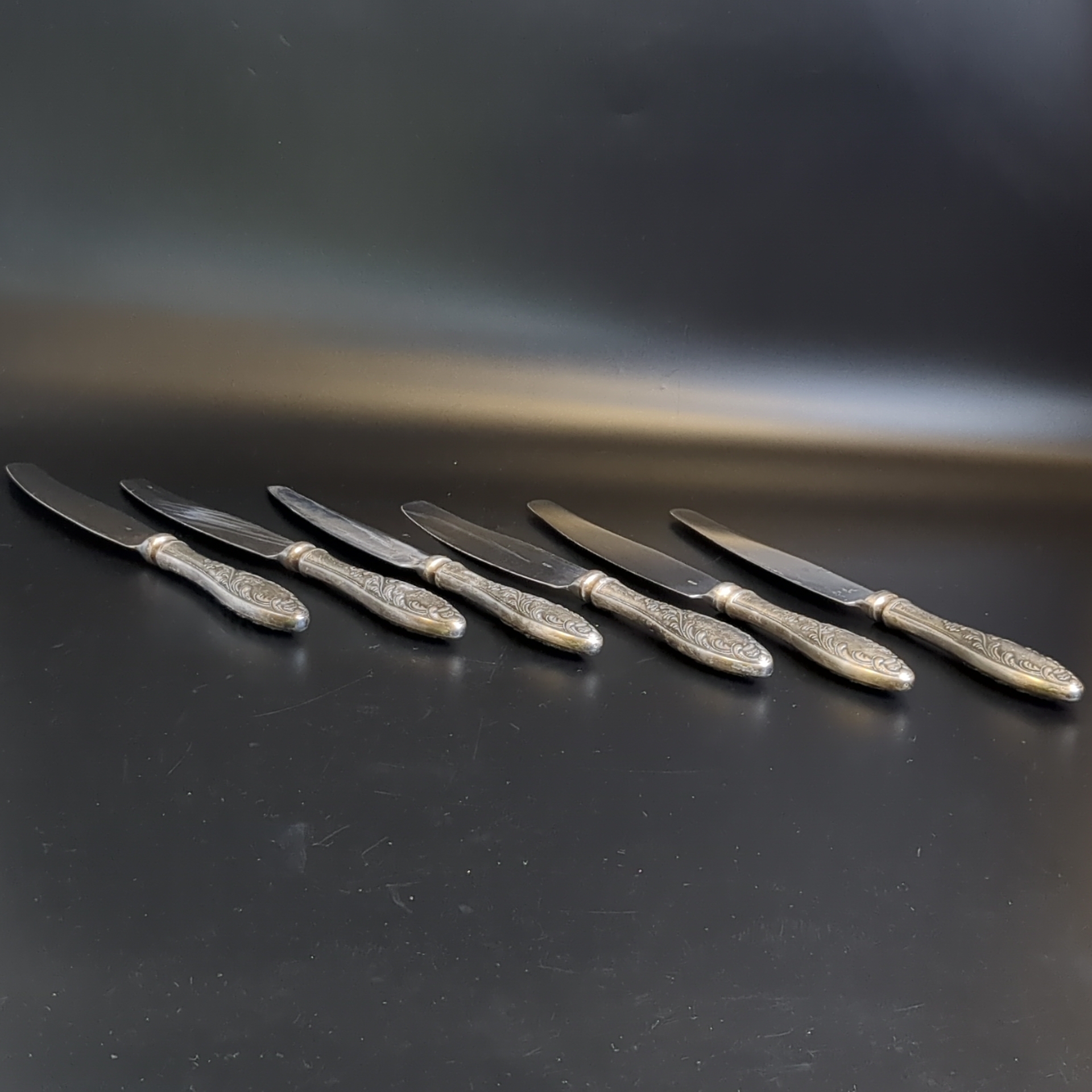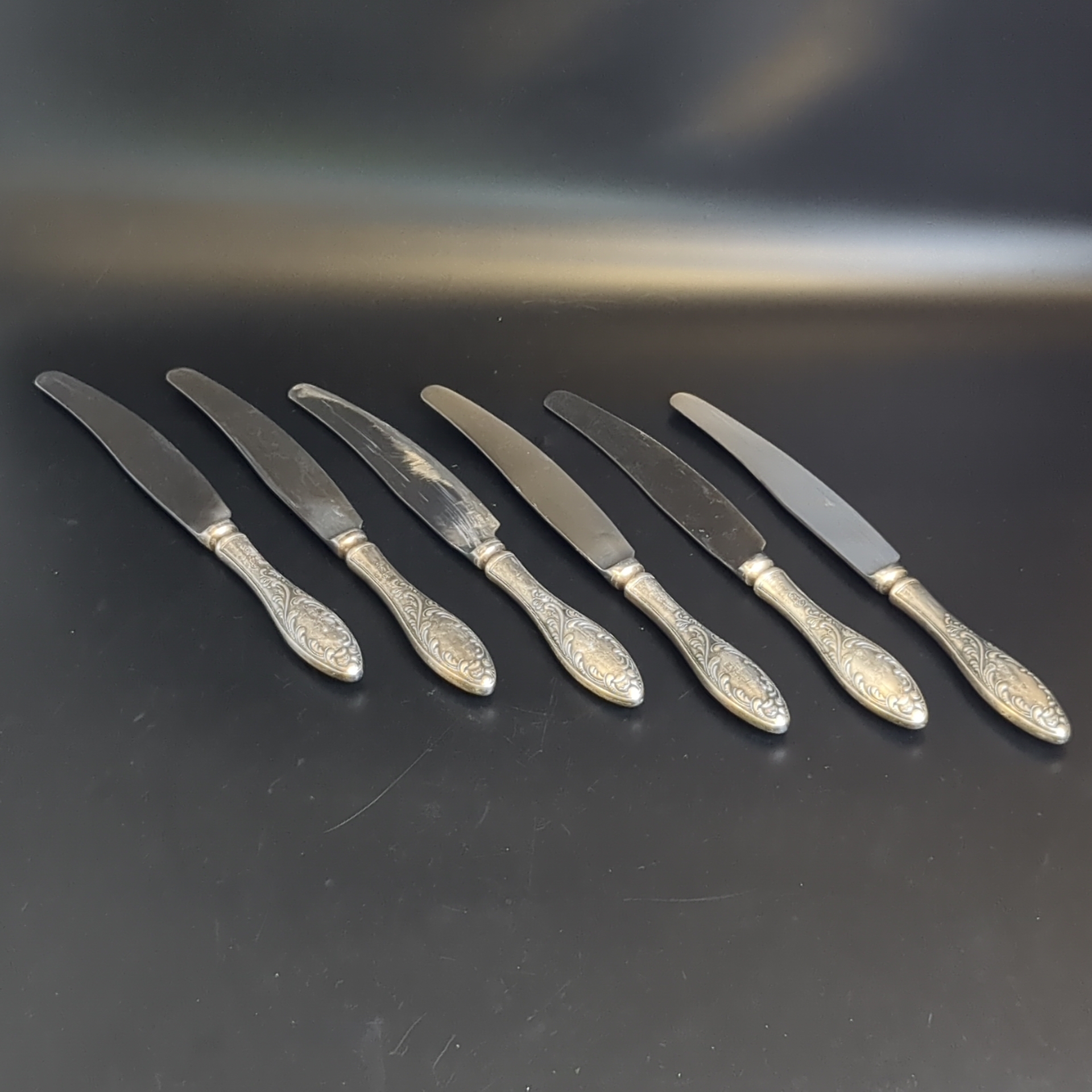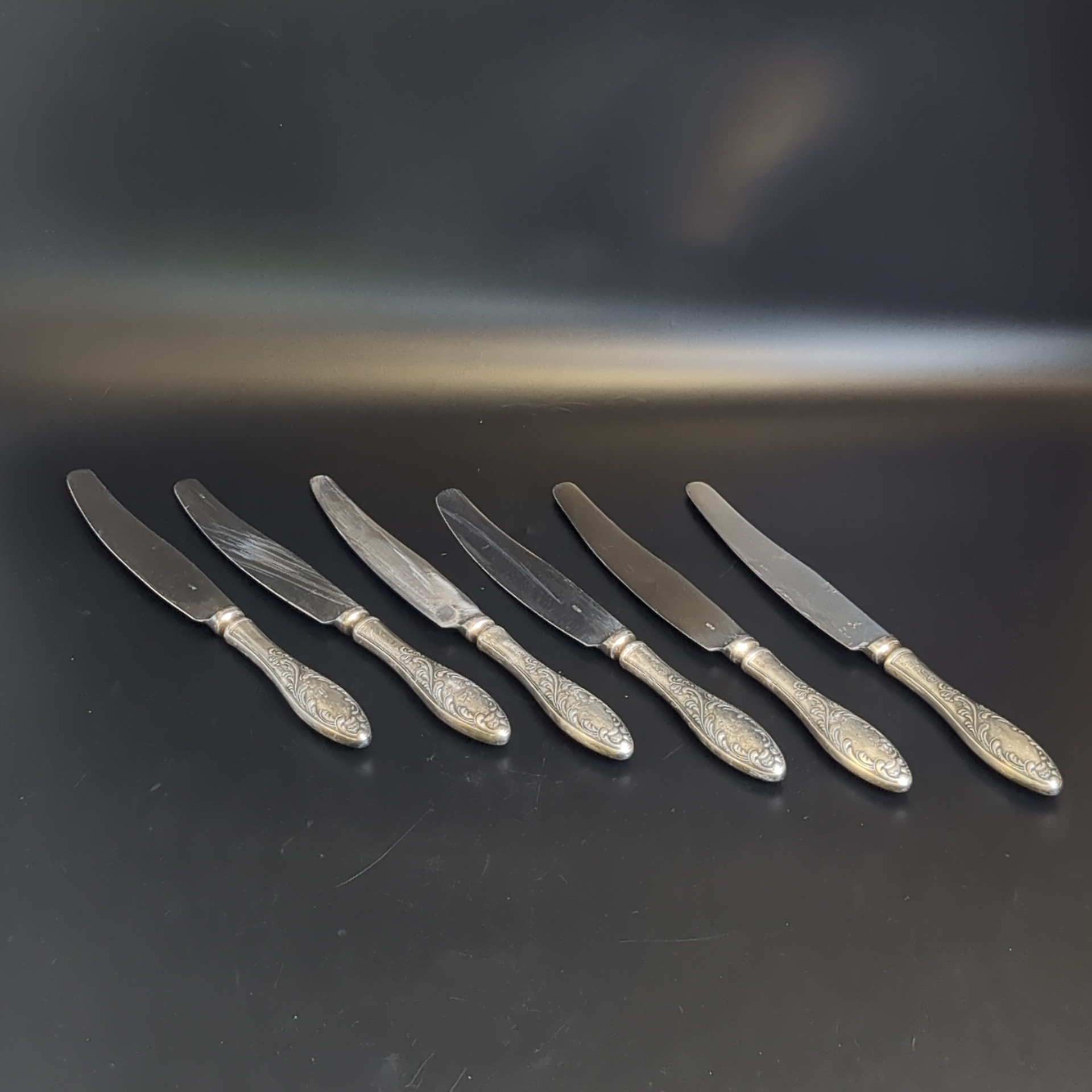 Набор столовых ножей Пламя на 6 персон, МНЦ (медь-никель-цинк), Оленегорский механический завод, СССР, 1970-1980 гг.