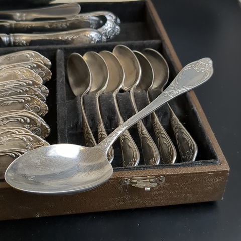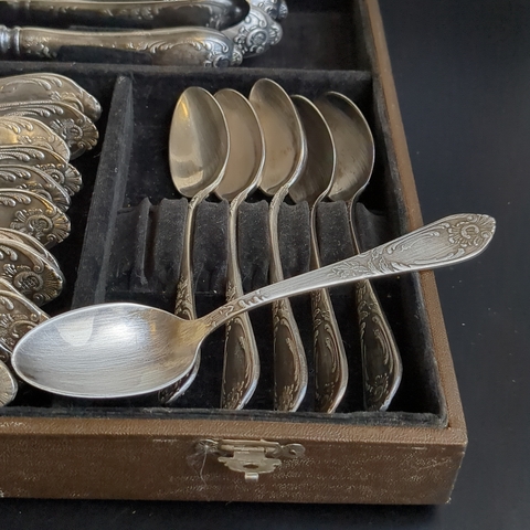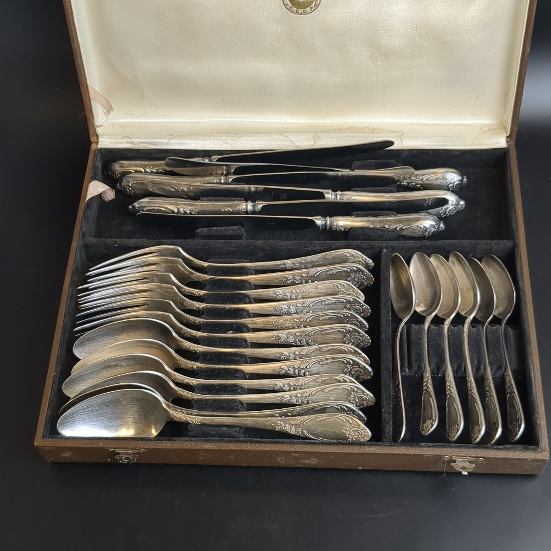 Набор столовых приборов на 6 персон (24 предмета) в оригинальной упаковке, мНЦ (медь-никель-цинк), Вольнянский завод столовых приборов им. Шевченко (ЗiШ, ЗиШ), СССР, 1960-1990 гг.