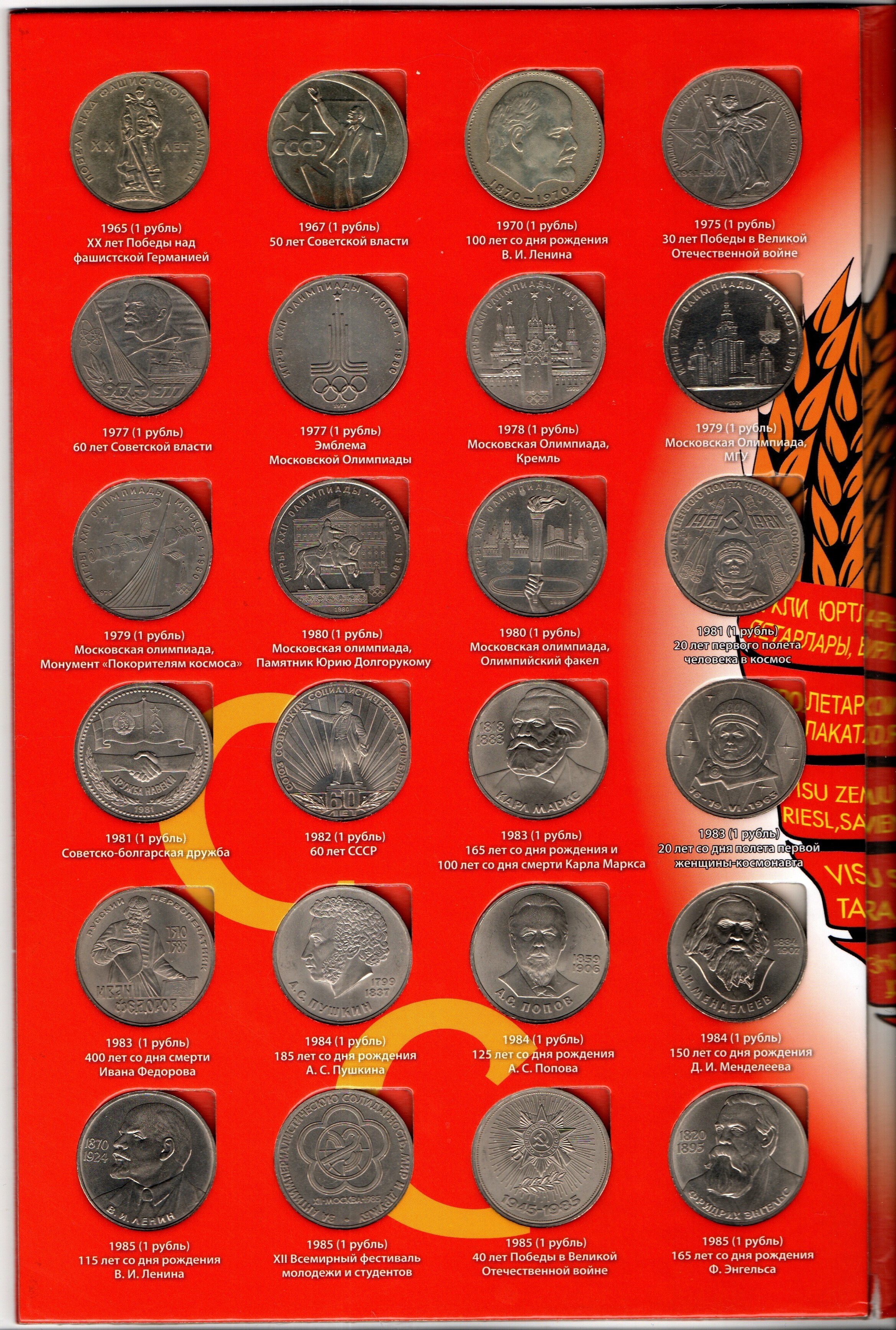 Набор юбилейных монет СССР в альбоме 64 монеты
