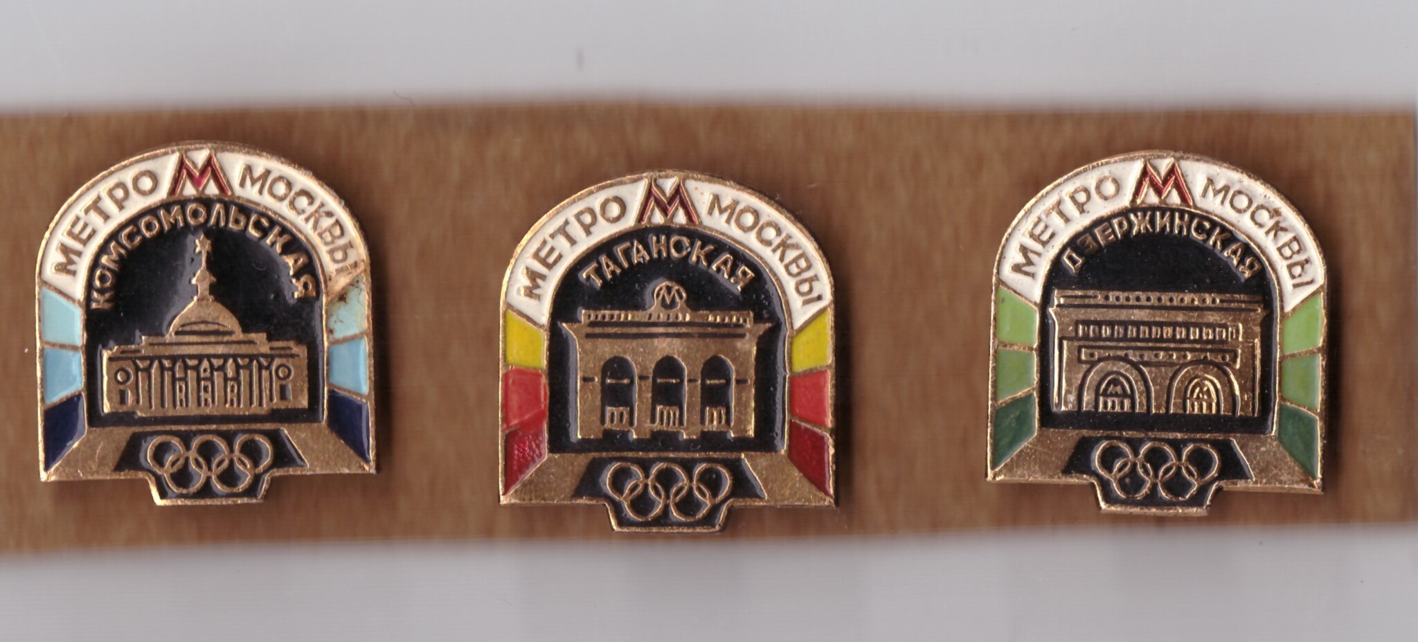 Набор значков 3 шт.. Московский метрополитен. Олимпиада 80.
