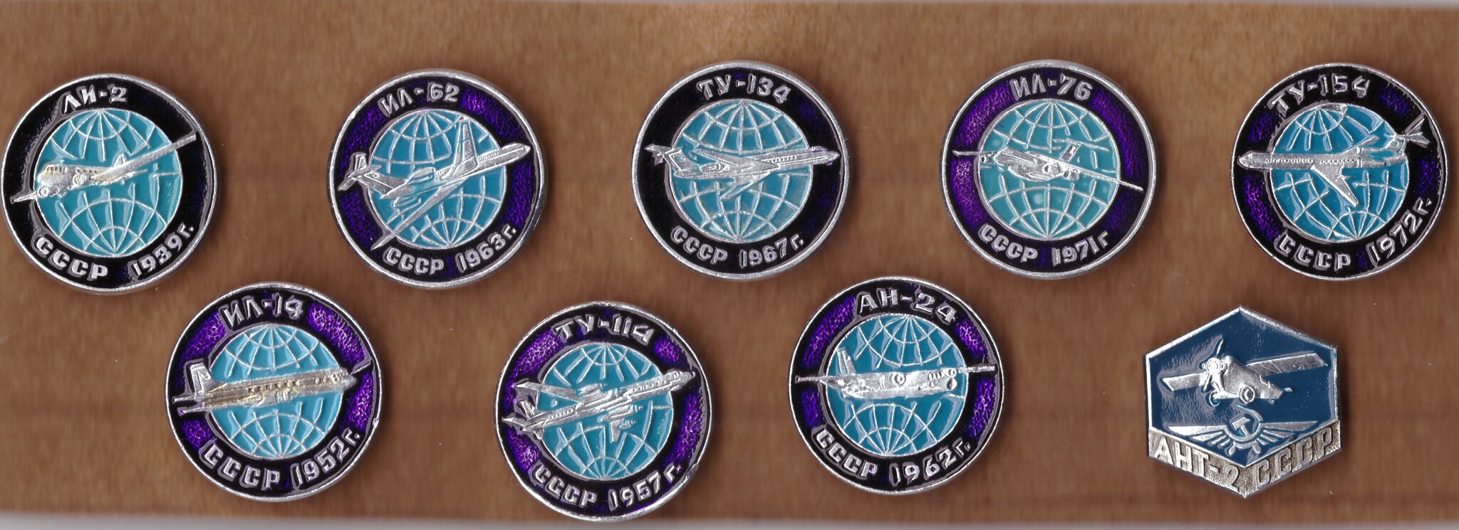 Набор значков 9 шт. История авиации в СССР. Алюминий.