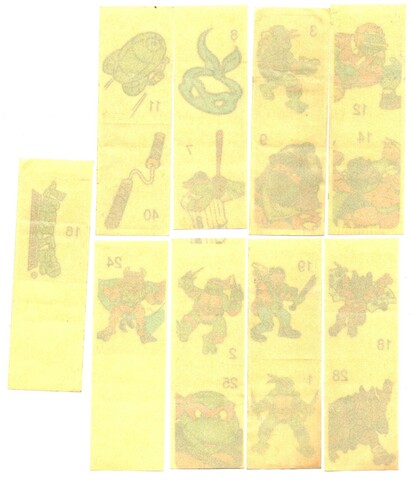 Наклейки Черепашки Ниндзя 16 штук времен СССР. Mirage Studios USA. Редкие наклейки по номерам без потворов. Turtles (Черепахи) - Bкладыш - наклейка жевательной резинки. номера 1, 2, 3, 7, 8, 9, 11, 12, 14, 16, 19, 18, 24, 25, 28, 40. teenage mutant hero turtles от dunkin. Состояние на фото.