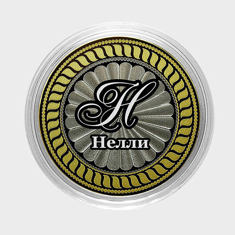 Сувенирная монета "Нелли" номиналом 10 рублей с выгравированным изображением.