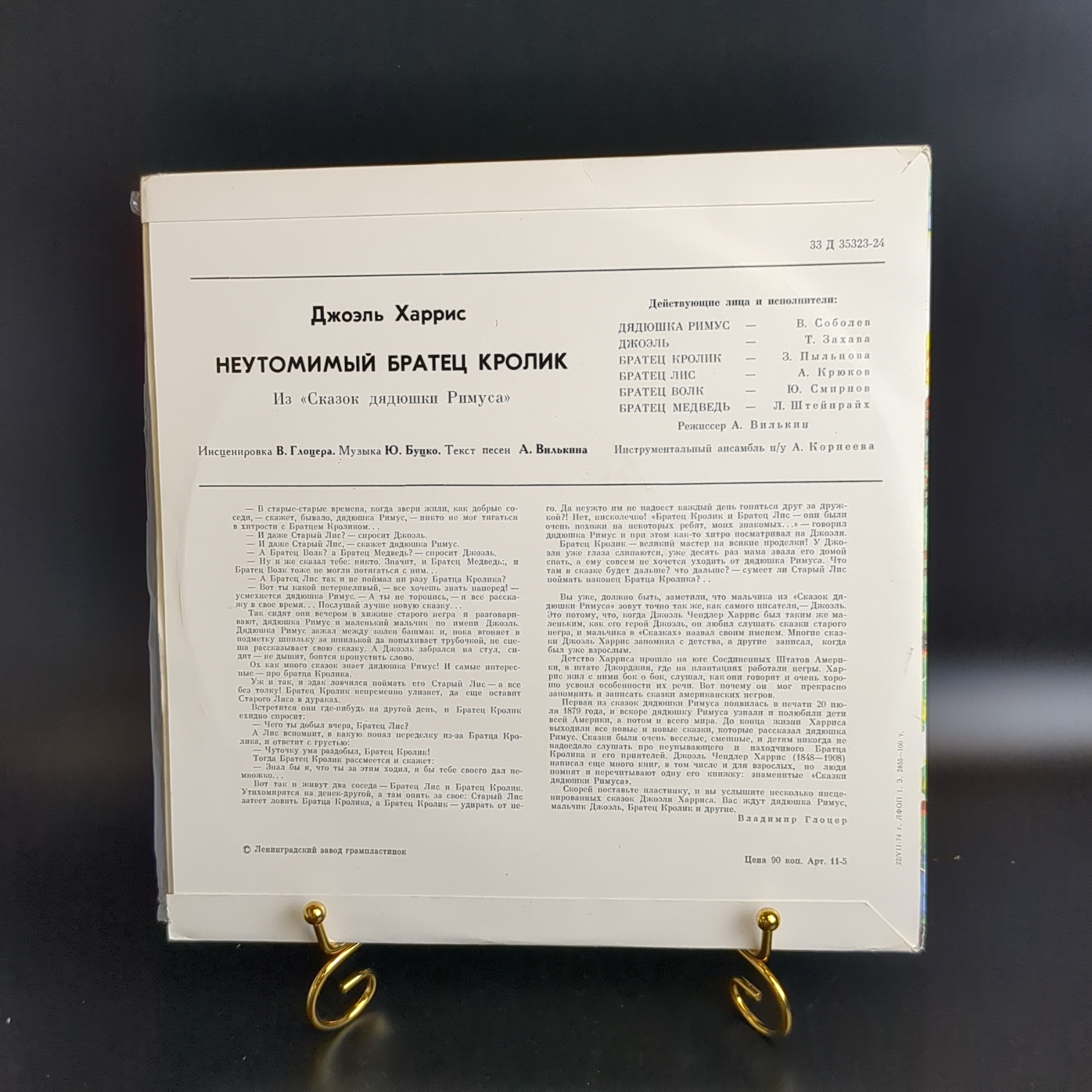Неутомимый братец кролик - Из сказок дядюшки Римуса. - Виниловая пластинка 10 дюймов. Мелодия СССР
