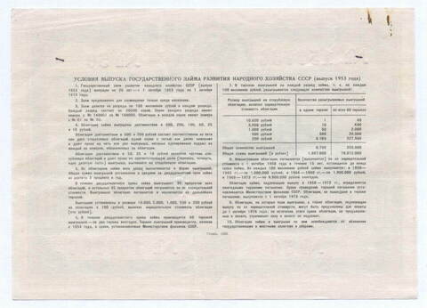 Облигация 10 рублей 1953 год. Серия № 157756. VF