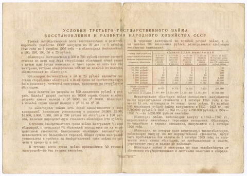 Облигация 100 рублей 1948 год. 3-ий заем восстановления и развития народного хозяйства. Серия № 044608. VG-F