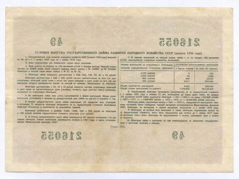 Облигация 100 рублей 1956 год. Серия № 216055. VF