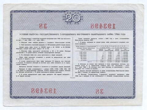 Облигация 20 рублей 1966 год. Серия № 193498. VF