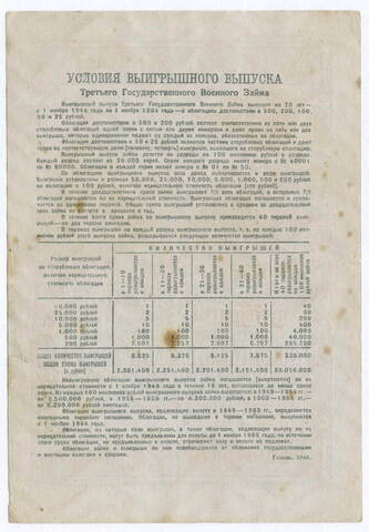 Облигация 25 рублей 1944 год. 3-ий государственный военный заем. Серия 040910. F-VF