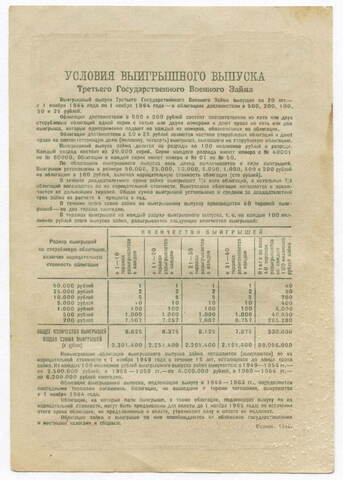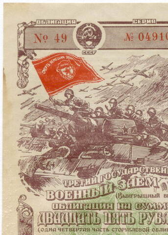 Облигация 25 рублей 1944 год. 3-ий государственный военный заем. Серия 049105. VF-