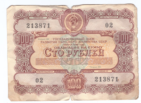 Облигация на сумму 100 рублей № 213871 (Выпуск 1956 года) VG