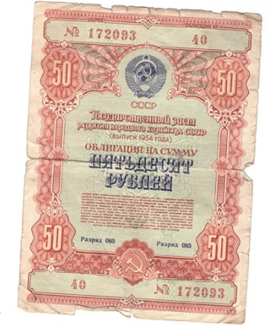 Облигация на сумму 50 рублей №172093 (Выпуск 1954 года) VG