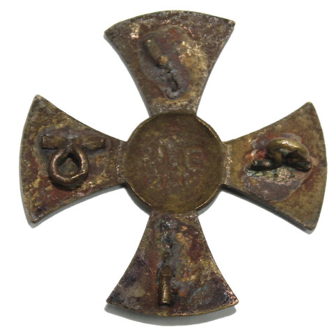 Обратная сторона. Гладкая, имеет винт со штифтом или четыре медных ушка для крепления к одежде. В Указе о роспуске Государственного ополчения от 5 апреля 1856 г. говорилось: "В память достохвального служения от генерала до ратника... даруется право сохранить по увольнении из ополчения отличительный знак оного - крест". В Положении о порядке представления к награждению указывалось: "О награде должно было упомянуто в увольнительном свидетельстве или в паспорте на отставку". Определялся и порядок ношения знака: генералы, штаб- и обер-офицеры, вышедшие в отставку, урядники и ратники, продолжающие военную службу, и отставные нижние чины, поступившие вторично в ополчение, носили крест на груди (по высочайшему приказу от 24 марта 1899 г. было предписано крест носить на левой стороне).