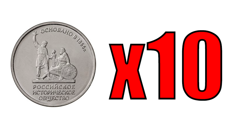 Опт 5 рублей "150-летие Русского Исторического Общества" 10 штук