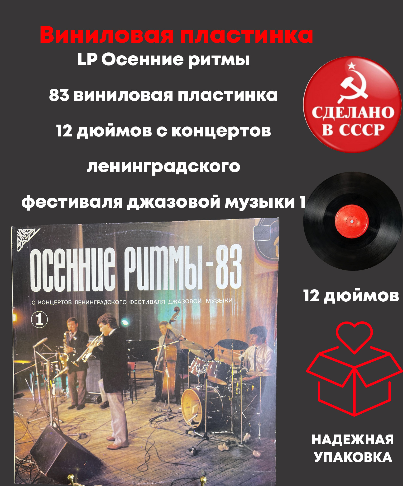 LP Осенние ритмы - 83 виниловая пластинка 12 дюймов с концертов ленинградского фестиваля джазовой музыки 1, Джаз на виниле. Мелодия СССР 1985 год. Конверт VG+ / Диск EX