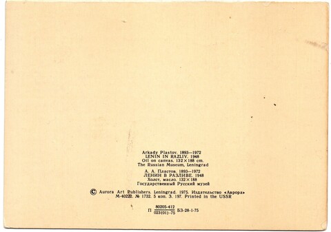Открытка худ. Пластов Ленин в Разливе. 1975 г. Двойная XF