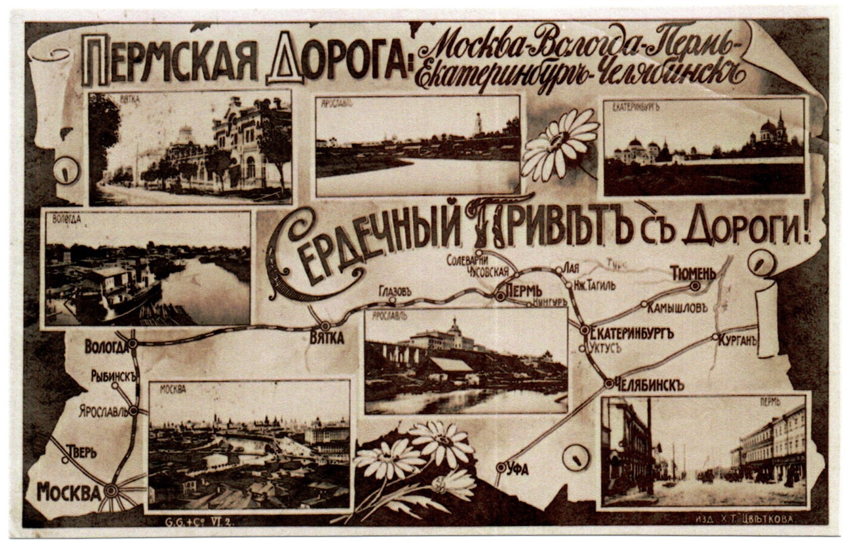 Открытка Копия Двухсторонняя Пермская дорога Дореволюционная XF