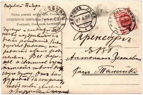 Открытое письмо. Ангел Хранитель. Феллин Лифлянская губерния — Аренсбург