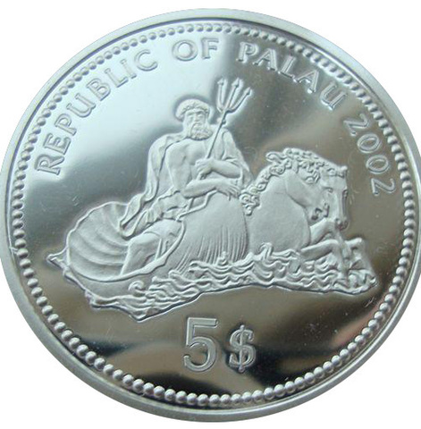Палау 5 долларов 2002 Рыба Чернополосый острорылый иглобрюх Защита морской жизни СЕРЕБРО