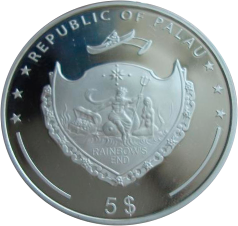 Палау 5 долларов 2007 Поезд паровоз Железная дорога СЕРЕБРО