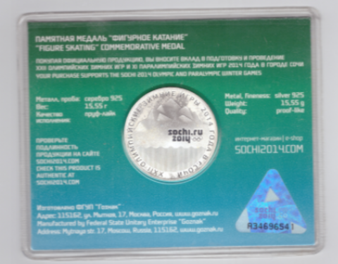 Памятная медаль "Фигурное катание" Сочи 2014 официальная лицензионная продукция с голограммой
