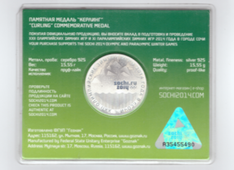 Памятная медаль "Керлинг" Сочи 2014 официальная лицензионная продукция с голограммой