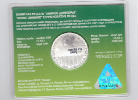 Памятная медаль "Лыжное двоеборье" Сочи 2014 официальная лицензионная продукция с голограммой