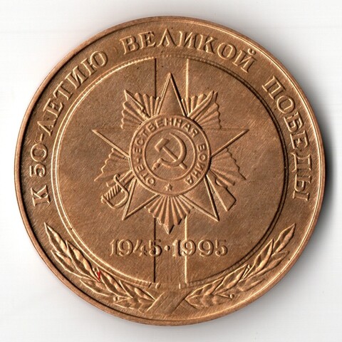 Памятная настольная медаль "К 50-летию Великой Победы 1945-1995". АО Лепсе г. Киров. Латунь, диаметр 50 мм (тяжелая)