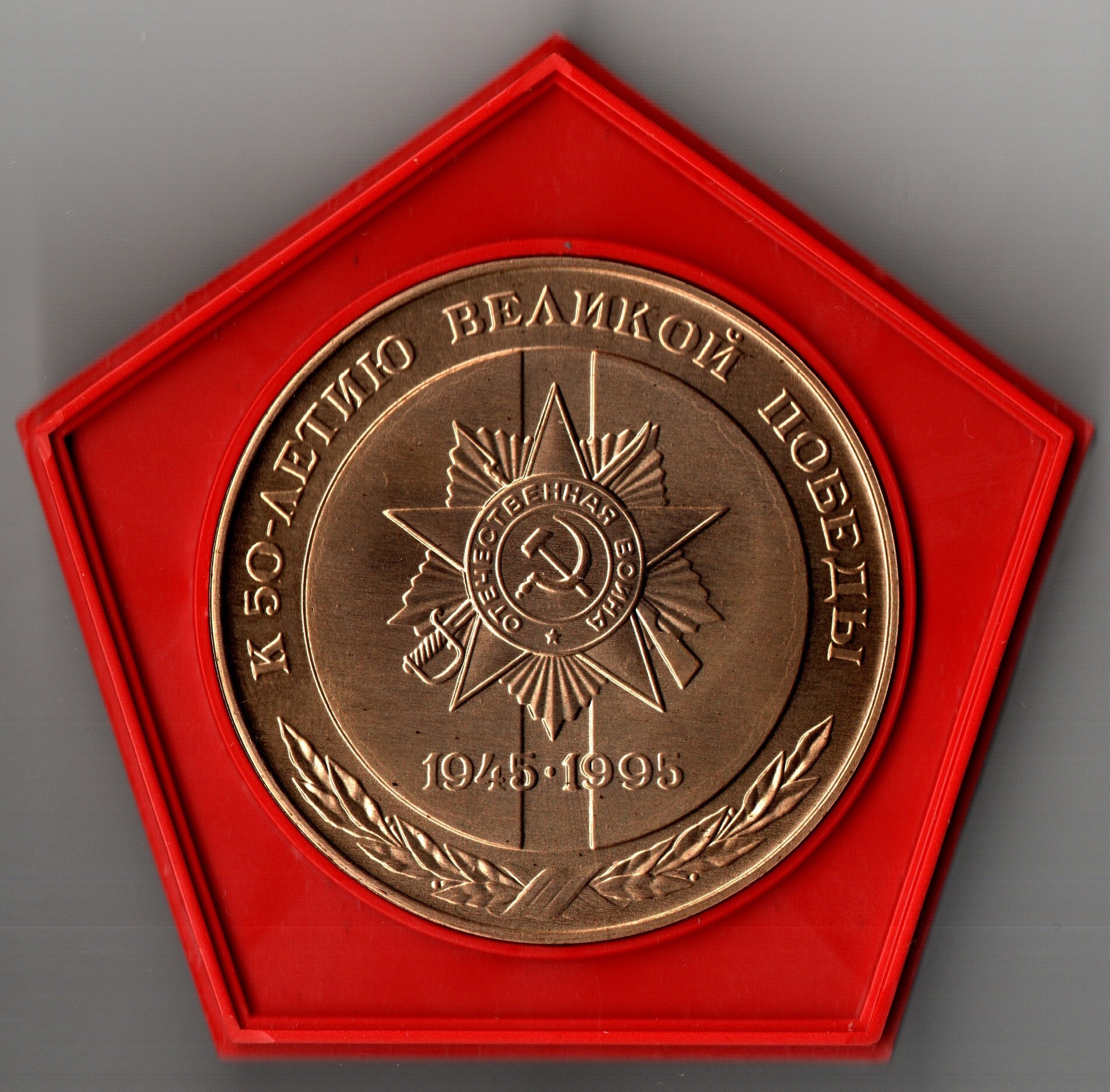 Памятная настольная медаль "К 50 - летию Великой Победы 1945-1995". АО Лепсе г. Киров. Латунь, диаметр 50 мм (тяжелая)