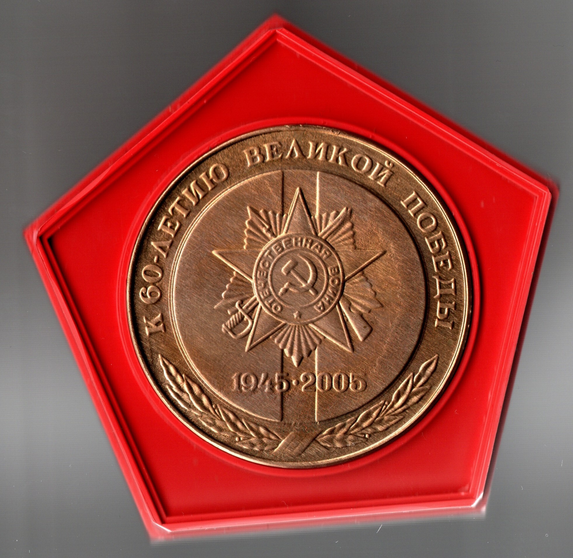 Памятная настольная медаль "К 60 - летию Великой Победы 1945-1995". АО Лепсе г. Киров. Латунь, диаметр 50 мм (тяжелая)