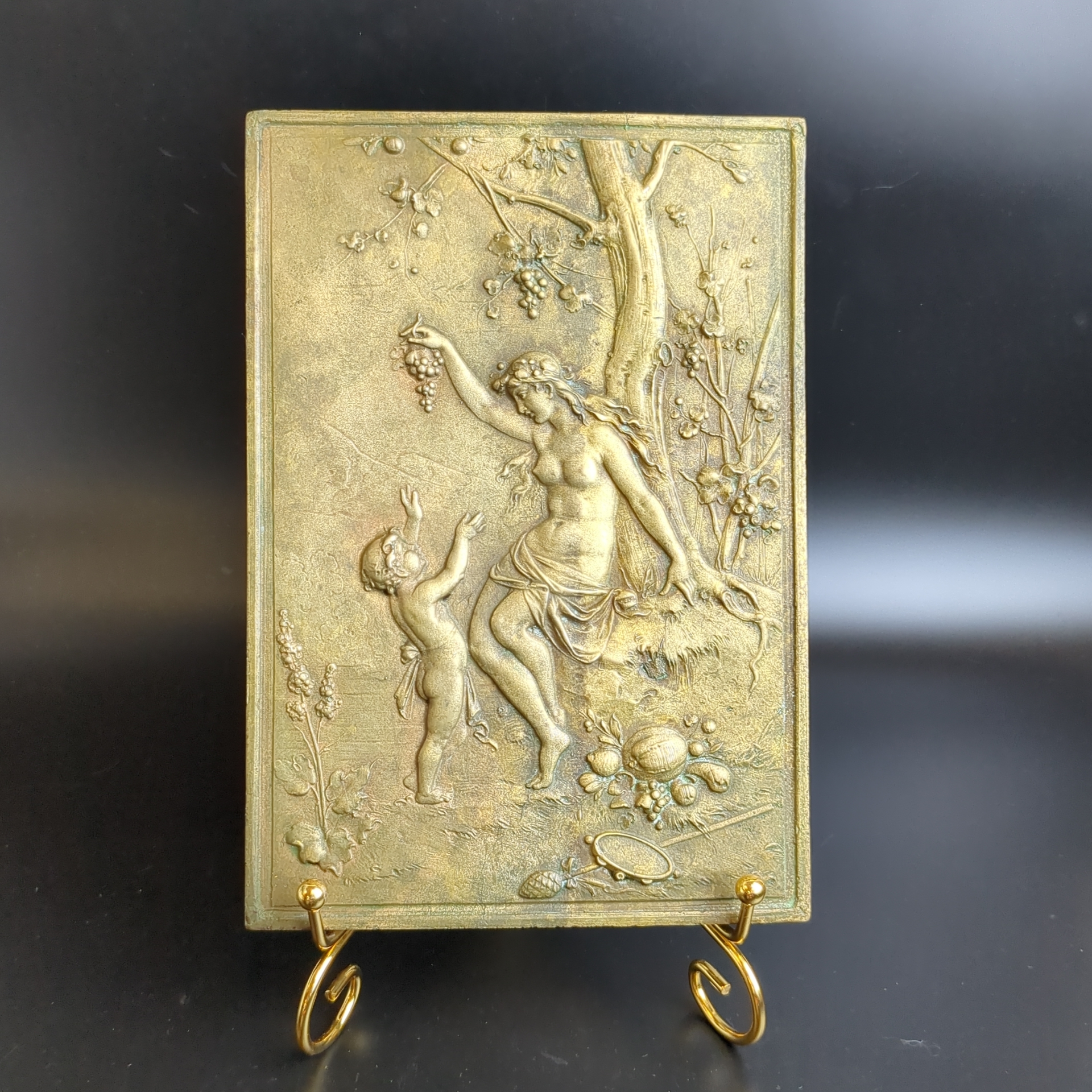 Панно Балерьеф Райский сад. Богиня Плодородия. Антиквариат. Тяжелое панно, вес 1,4 кг. Размер 21,7 х 15 см. Латунь